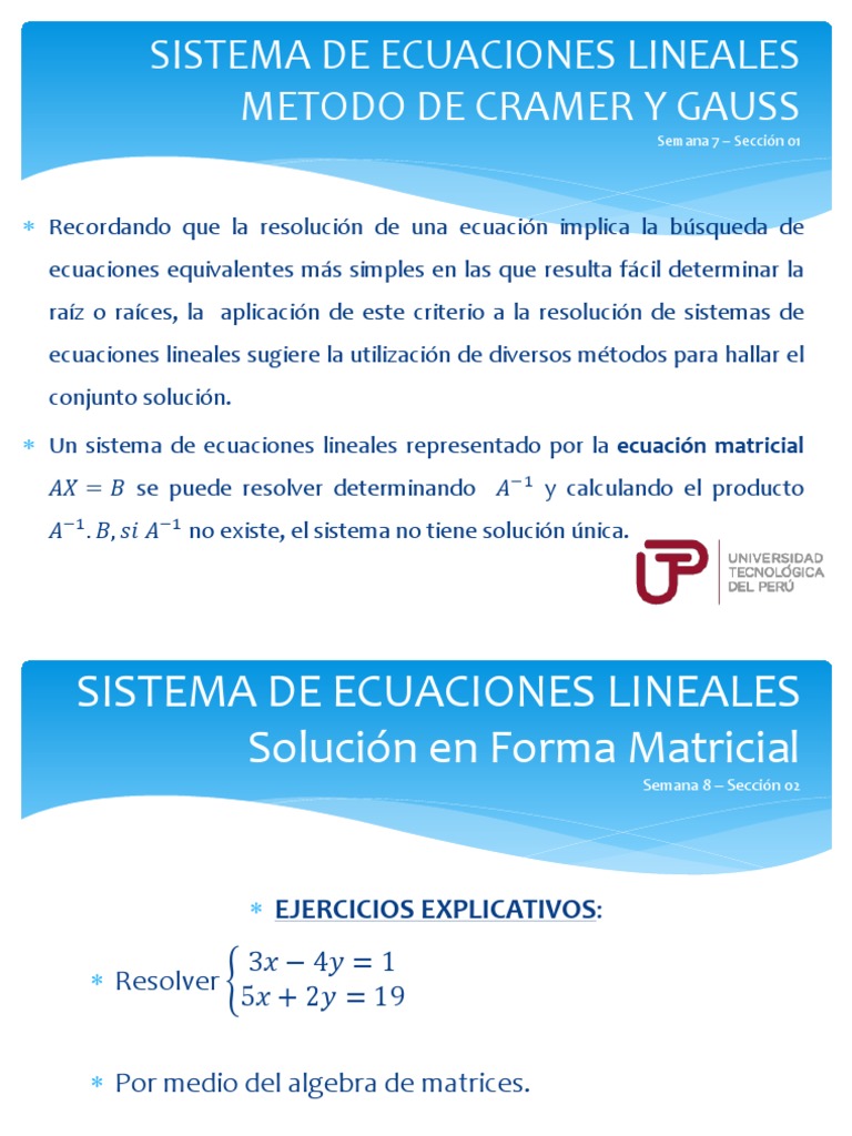 Sistema De Ecuaciones Lineales Metodo De Cramer Y Gauss Semana 7 Seccion 01 Sistema De Ecuaciones Lineales Ecuaciones Uji Coba Gratis 30 Hari Scribd Paulo Freire Metodo De Alfabetizacion