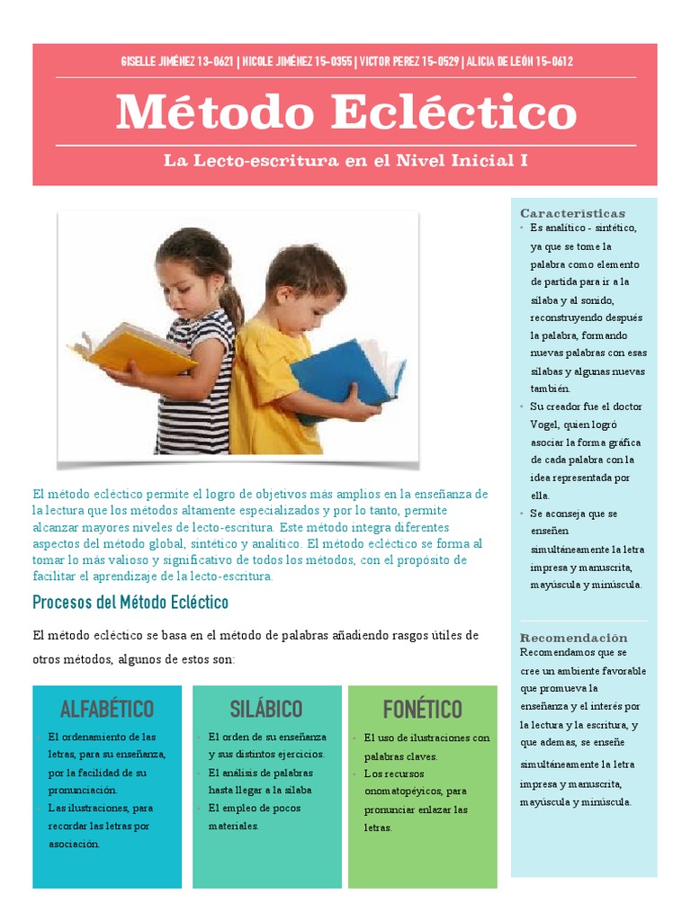El metodo eclectico es un metodo sintetico analitico que aprovecha las ventajas de ambos sistemas de ensenanza y aprendizaje para crear un proceso mas real y adaptado a verdaderas necesidades. Drcarlos vogel 1795 1862 metodo eclectico para hablar del metodo eclectico debemos dar a conocer su significado. Monografias plus metodo eclectico.