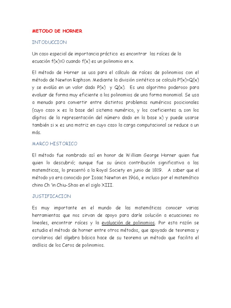 Metodo De Horner Algoritmos Ecuaciones Metodi Di Coltivazione Alternativi
