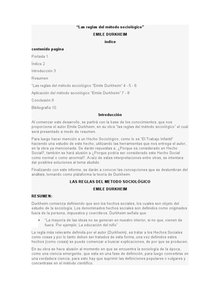 Resumen Emile Durkheim Las Reglas Del Metodo Sociologico Prologo Introduccion Caps 1 Y 2 Sociologia Ciencia Diu Metodo Anticonceptivo