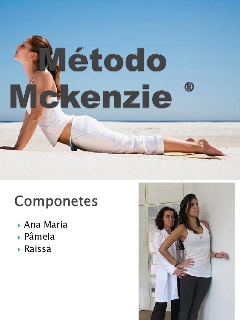 El metodo mckenzie empieza cuando el fisioterapeuta acreditado en el metodo hace una historia detallada sobre los sintomas y su comportamiento para averiguar si estan relacionados o no con posturas o movimientos que se realizan en la actividad cotidiana. Vandeput el metodo mckenzie que procede de las observaciones clinicas de robin mckenzie un sioterapeuta neozelandes es un sistema de examen y tratamiento que coloca el autotratamiento en el centro de la estrategia terapeutica. O metodo mckenzie e uma terapia para a dor no pescoco e na coluna que mudam quando efetuamos determinados movimentos dor de tipo mecanico.