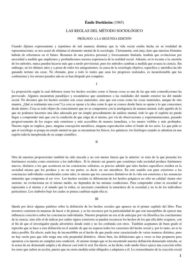 Resumen Emile Durkheim Las Reglas Del Metodo Sociologico Prologo Introduccion Caps 1 Y 2 Sociologia Ciencia Tamizado Metodo De Separacion Ejemplos