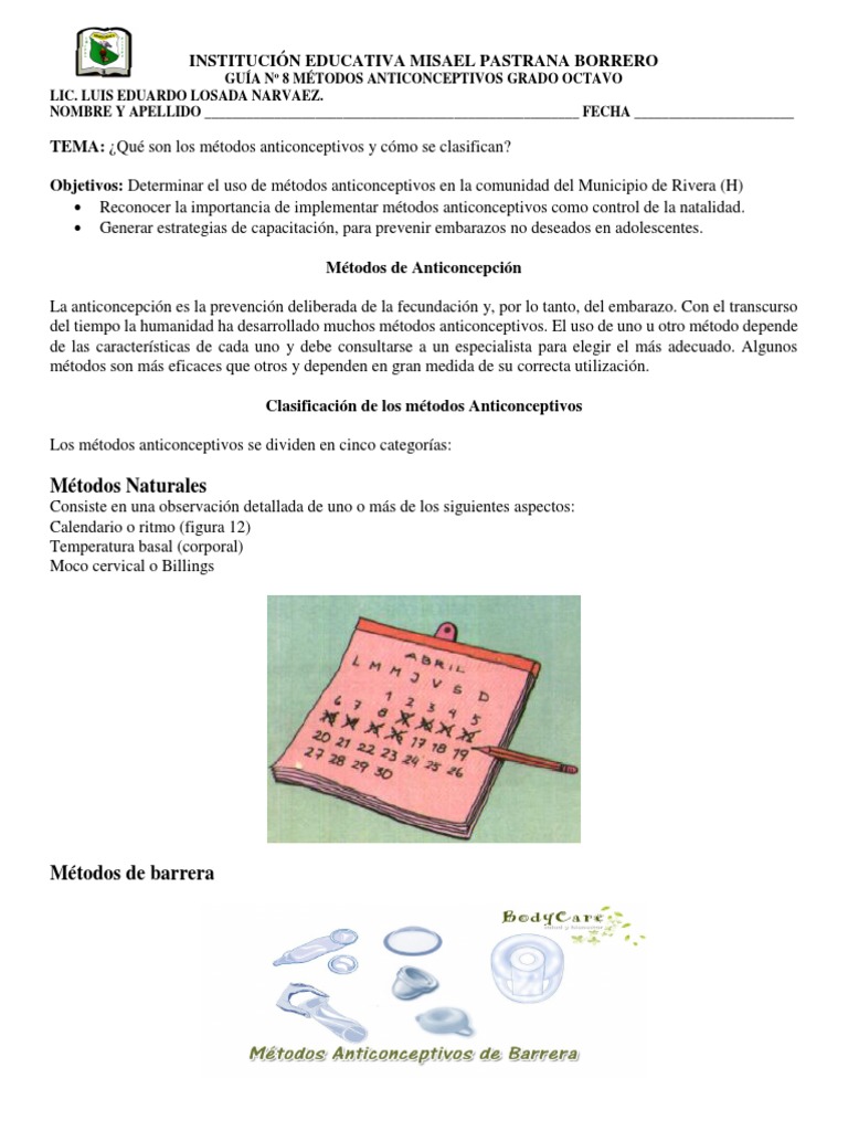 Guia De Aprendizaje 8 Metodos Anticonceptivos Control De La Natalidad Planificacion Familiar Il Metodo Kominsky Cast
